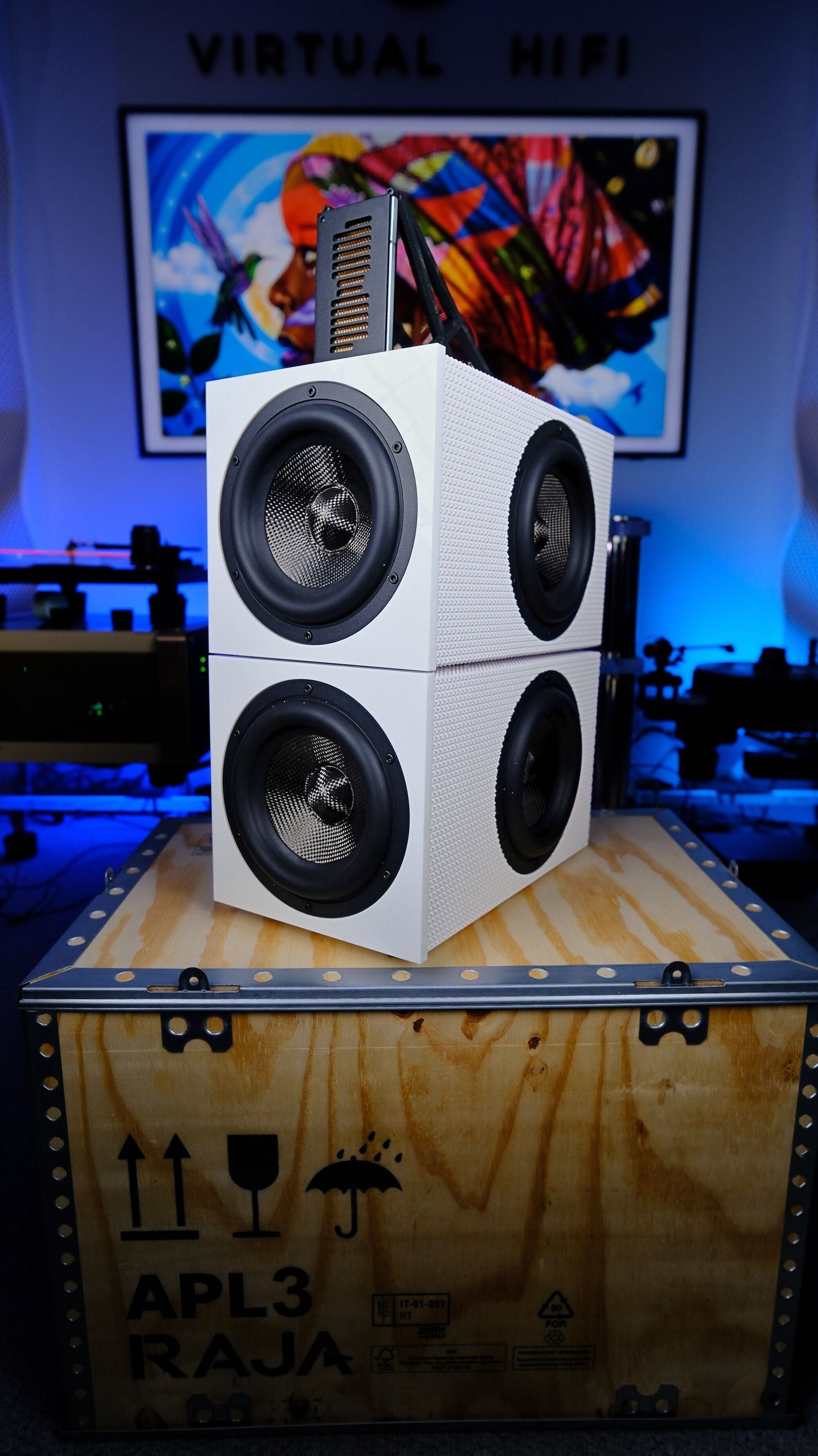 Cobra uses the finest 7" drivers, supercharged by twelve passive radiators and housed in acoustically dead 3D-printed composite cabinets. With ultra-premium crossover parts and pure signal paths, Cobra delivers explosive bass, flawless detail, and a sound born from true dark-arts engineering.